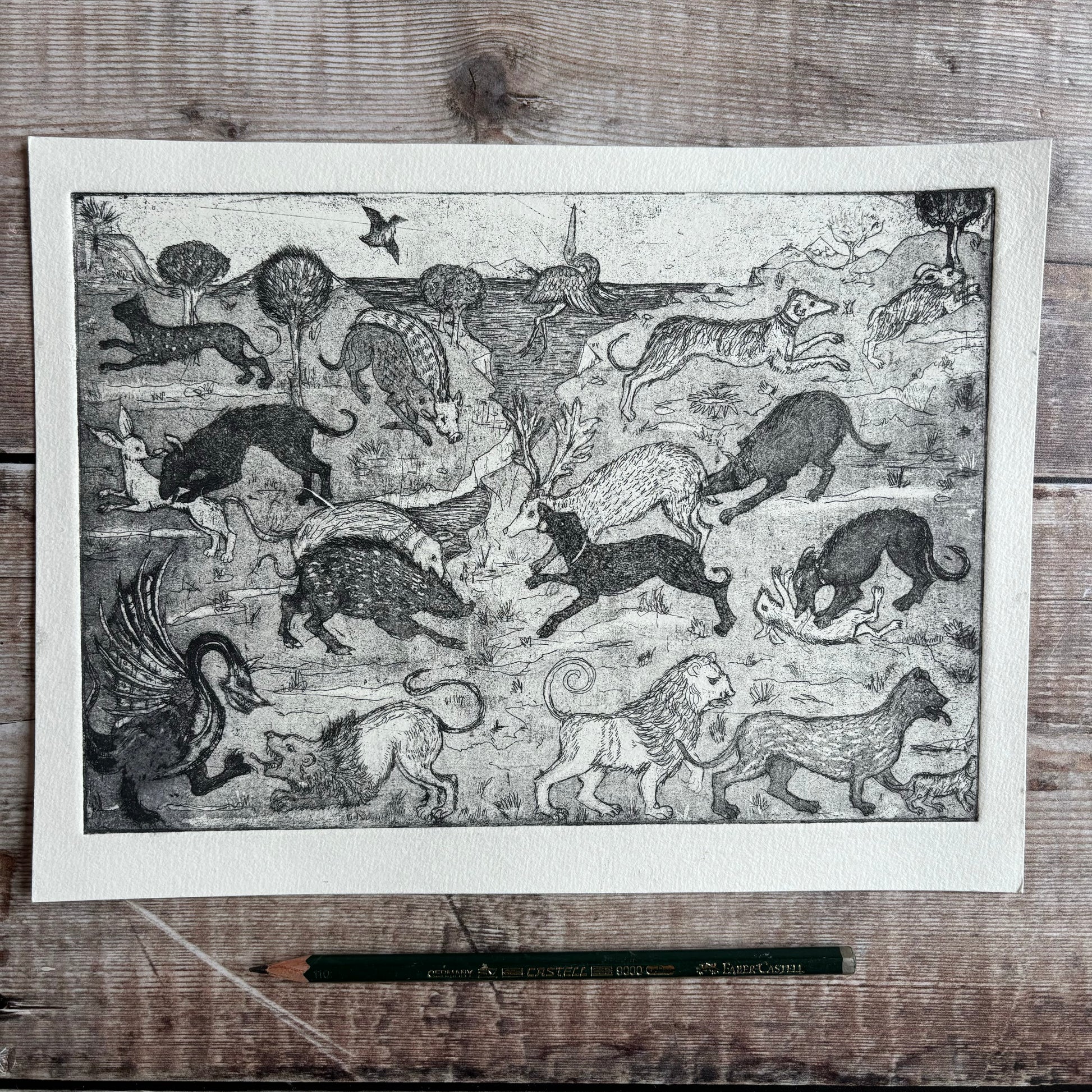 I have a couple of my popular 'Animal Allsorts' etchings available.