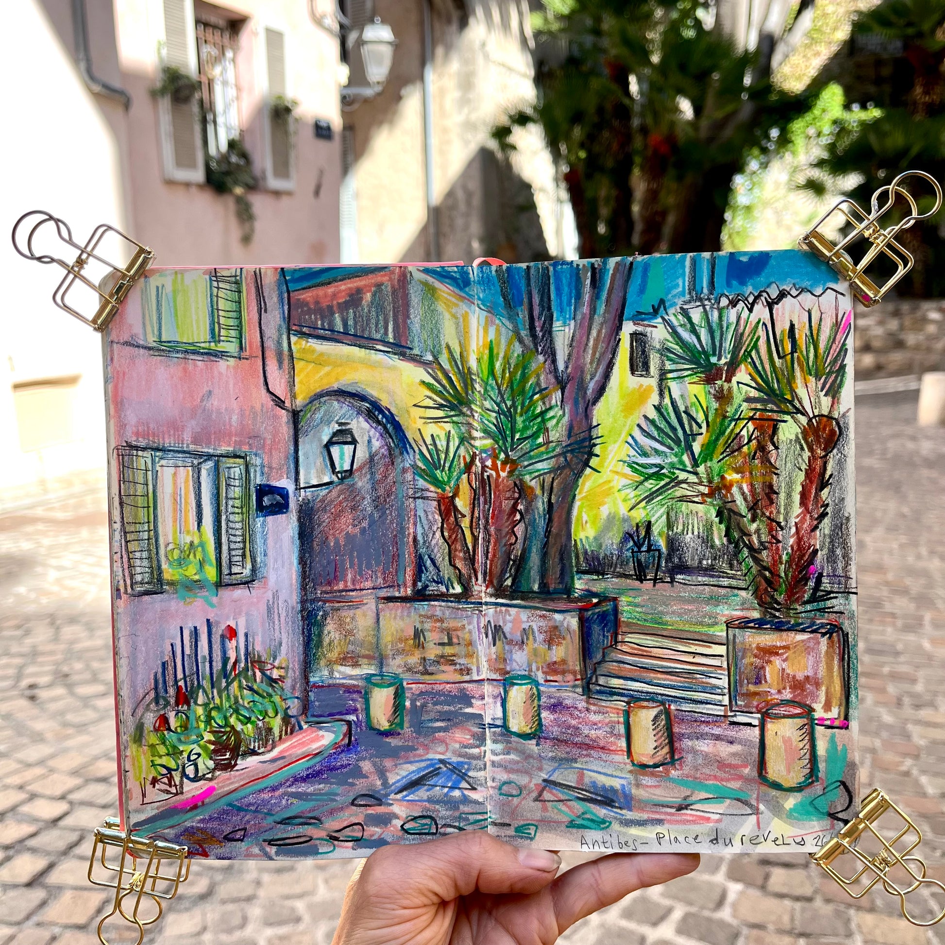 I returned to Antibes this summer and rented a delightful apartment here, in Place Du Revely - right in the heart of the town , just a minute from the daily market. It was a delight to return to everyday and was a perfect cool spot to spend a morning drawing.