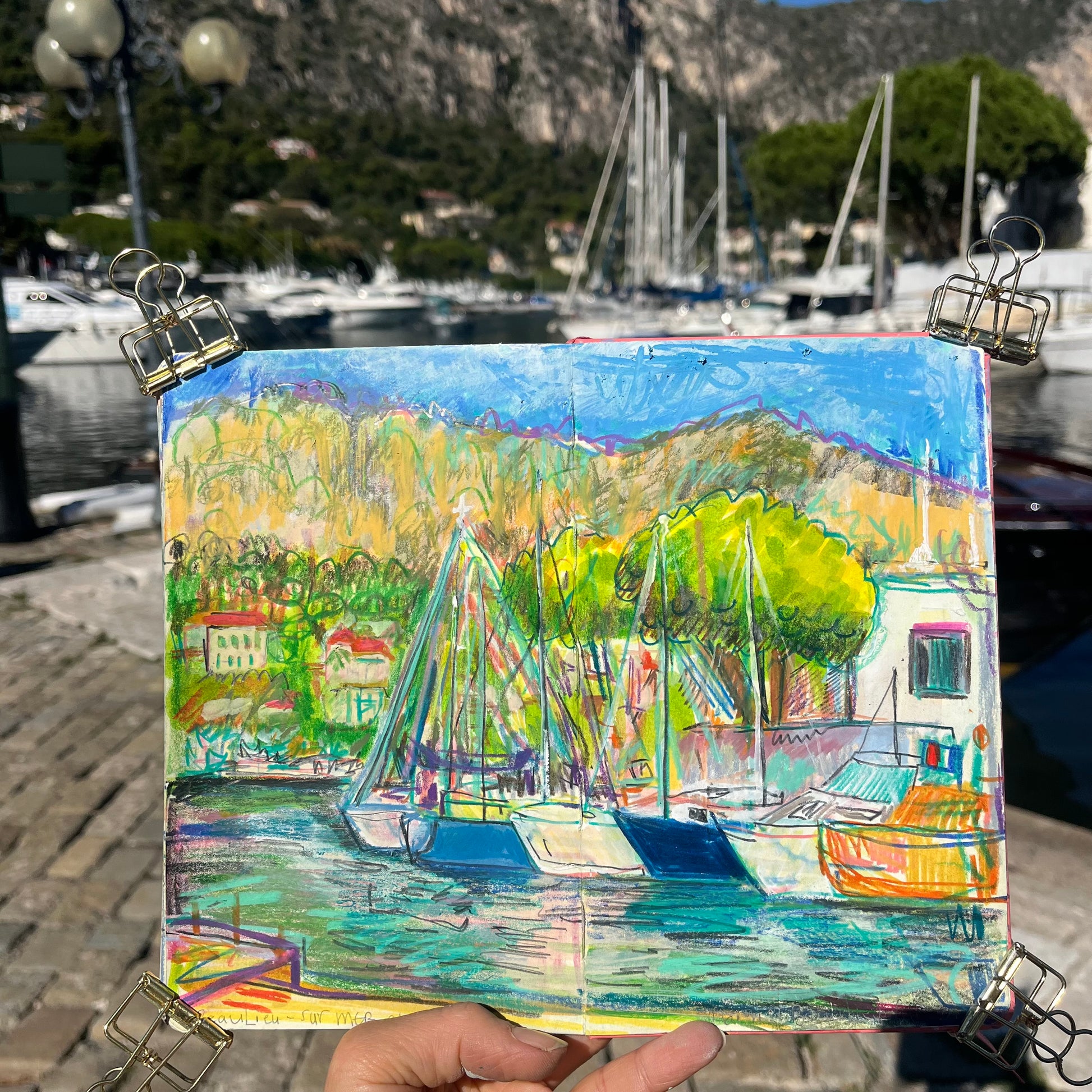 One of the stops on the coastal train on the French Riviera is Beaulieu Sur Mer - it's a place that has been mentioned in various books I've read so I was curious to visit. I spent a long afternoon drawing in the harbour - watching the expensive boats and yachts come and go.