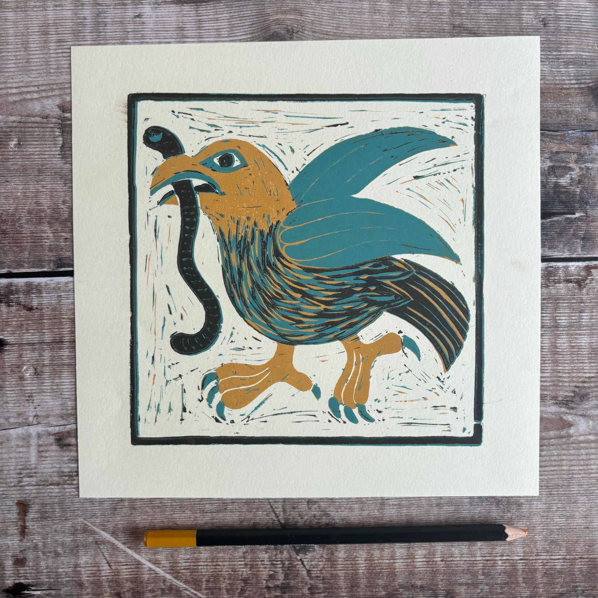 I have a couple test prints of my Bird and Worm print. It's an older print and the edition is now sold out so a great opportunity to grab a unique print!