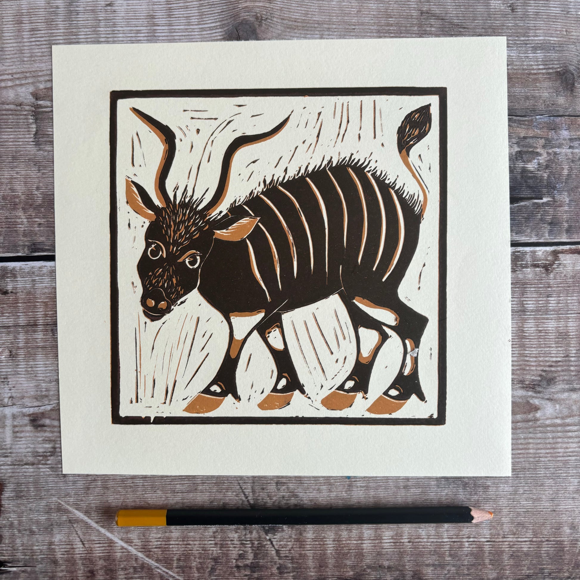 I have just one test print of this older and now sold out print called Bongo - inspired by the antelope of the same name.