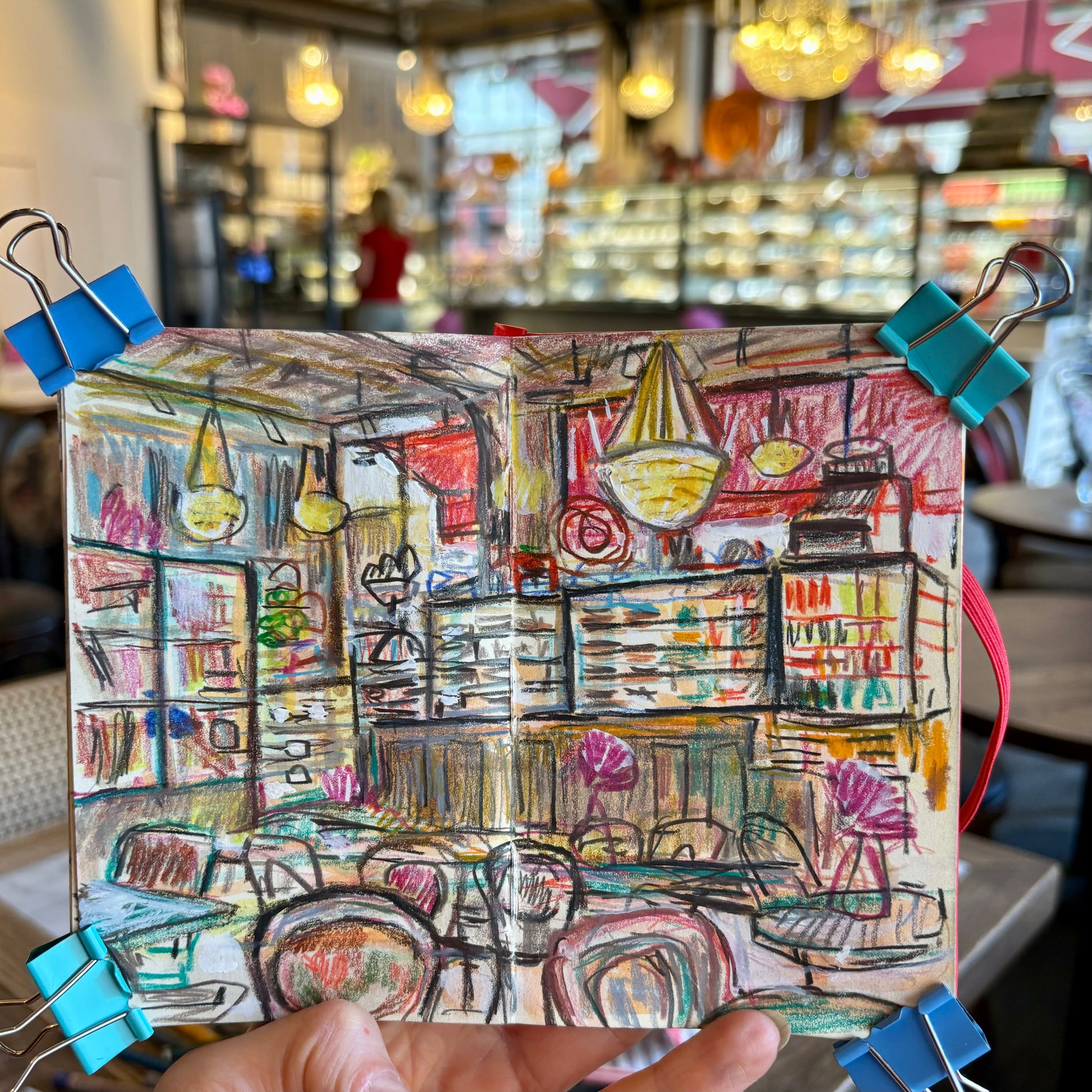 When I'm not making work/ running workshops / coaching from my studio then I'm travelling around the UK and Europe with my sketchbook.