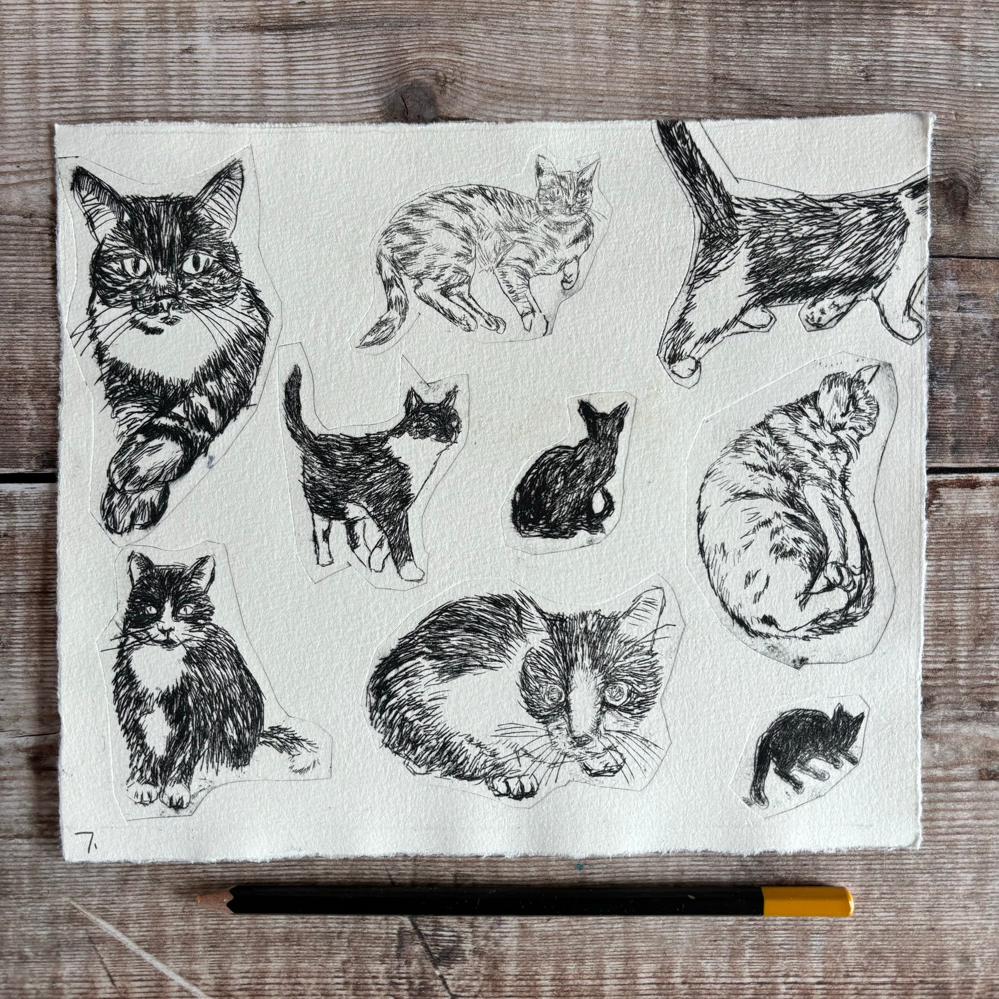 I have a few test prints of my 'Collection of Cats' drypoints