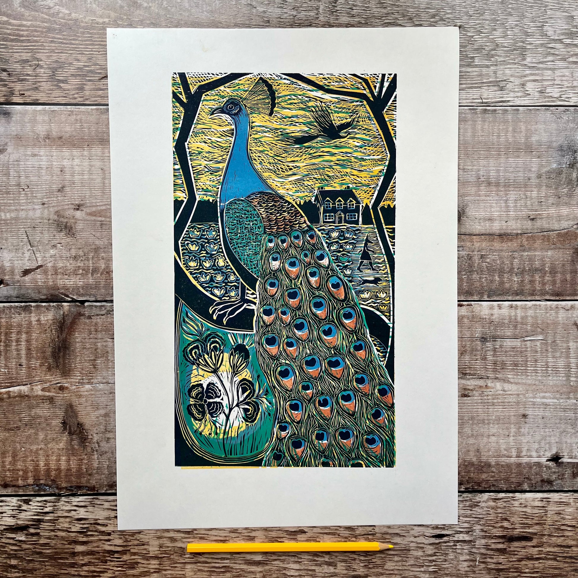It's a 5 colour block linocut , each print is unique and there will always be slight variations.