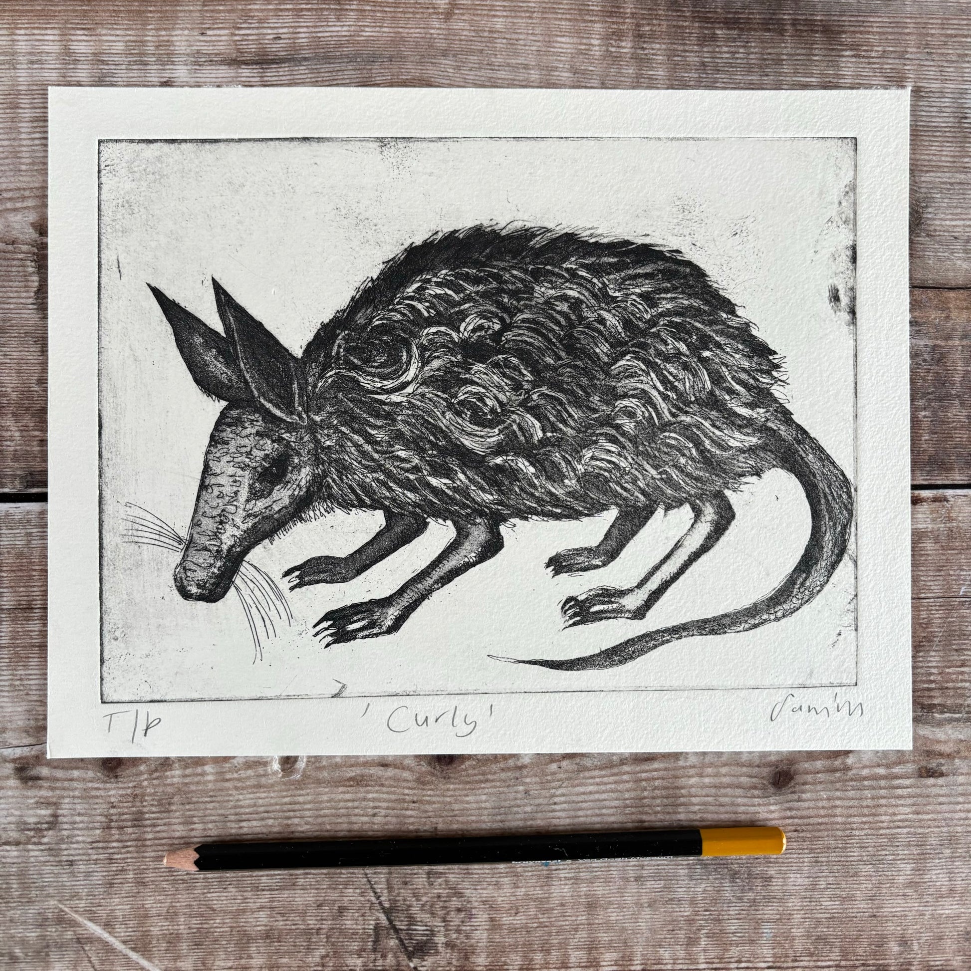 I have 2 test prints of my Curly etching.