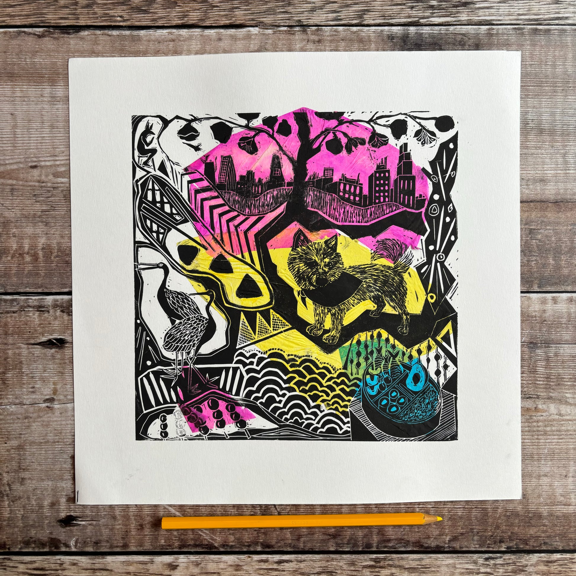 My artwork is handprinted with love from my colourful studio in the heart of rural England and shipped to customers worldwide.