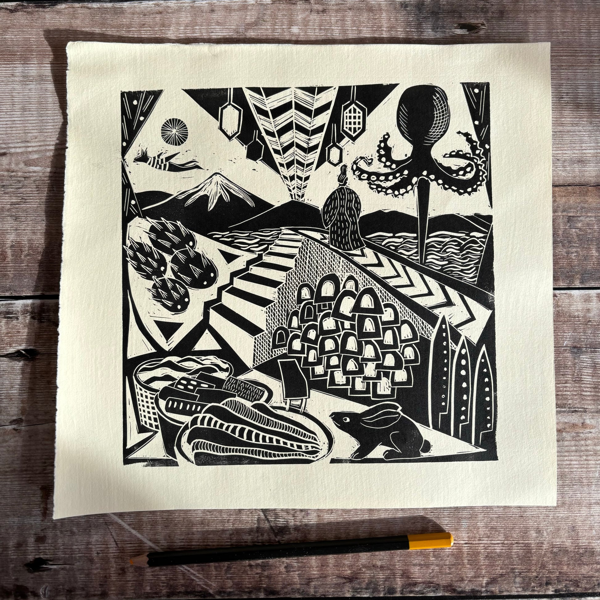 My artwork is handprinted with love from my colourful studio in the heart of rural England and shipped to customers worldwide.
