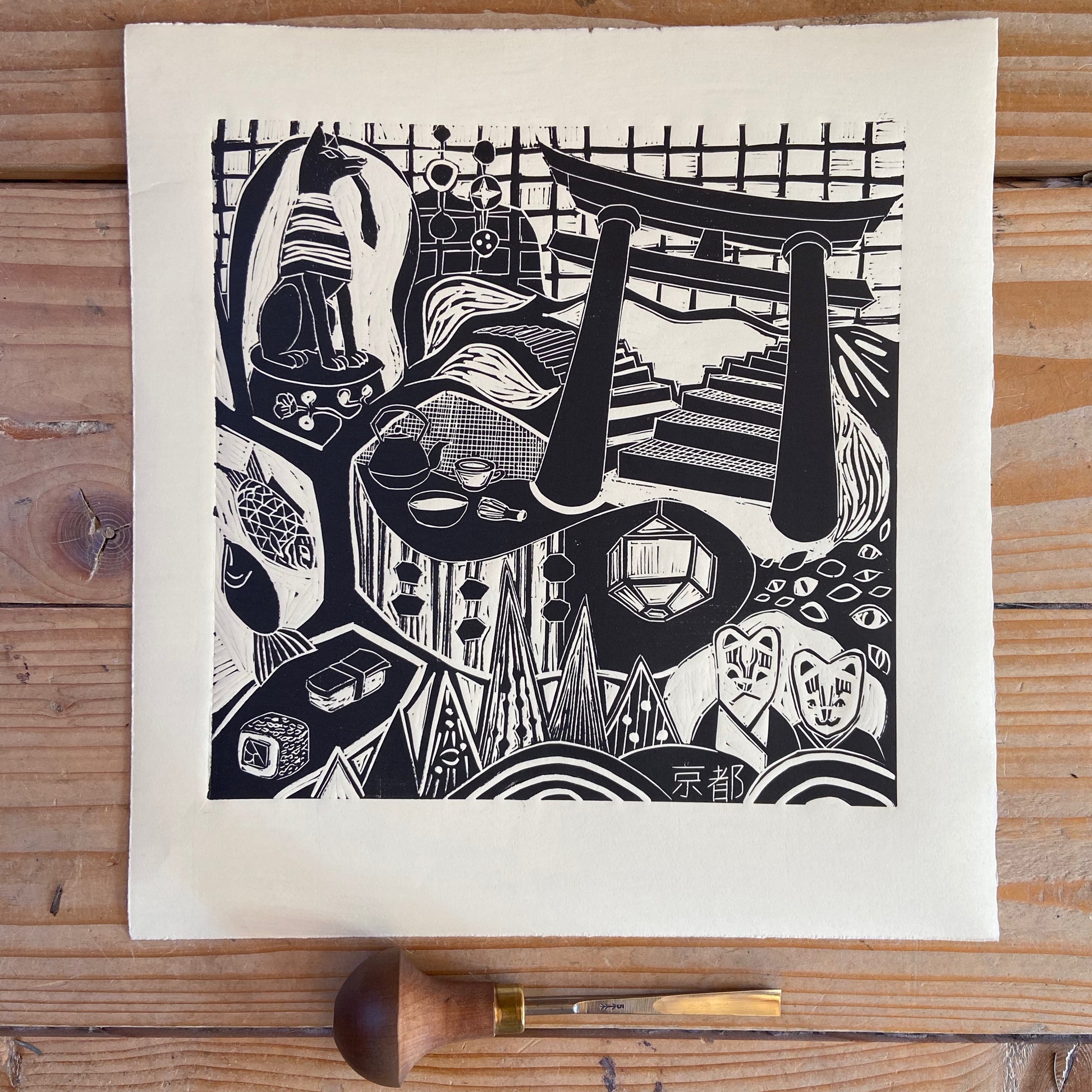 I print everything from my studio using a small wooden hand press and my etching press. The finished result is unique and original with no two prints being alike.