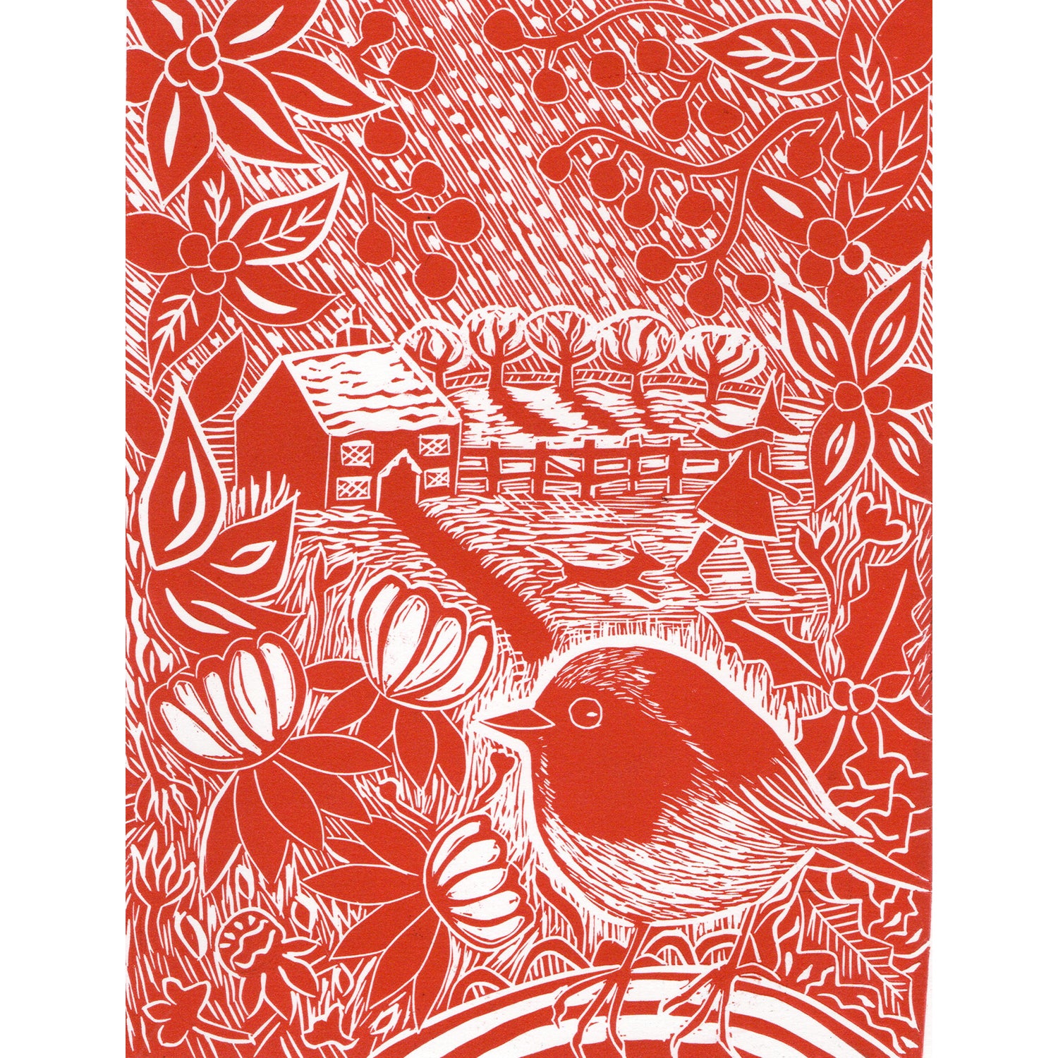 At the start of 2021 I decided that I would like to document my life (and Marple's!) here at Holly Tree Cottage through a series of monthly linocuts. This is December. Here you can see Marple and I scampering through the snow whilst our cottage gets gently covered in snow. Our resident robin has returned and the aconites are beginning to show their little heads.