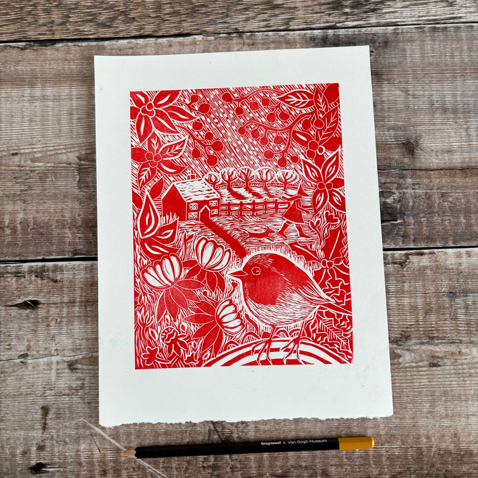 My artwork is handprinted with love from my colourful studio in the heart of rural England and shipped to customers worldwide.