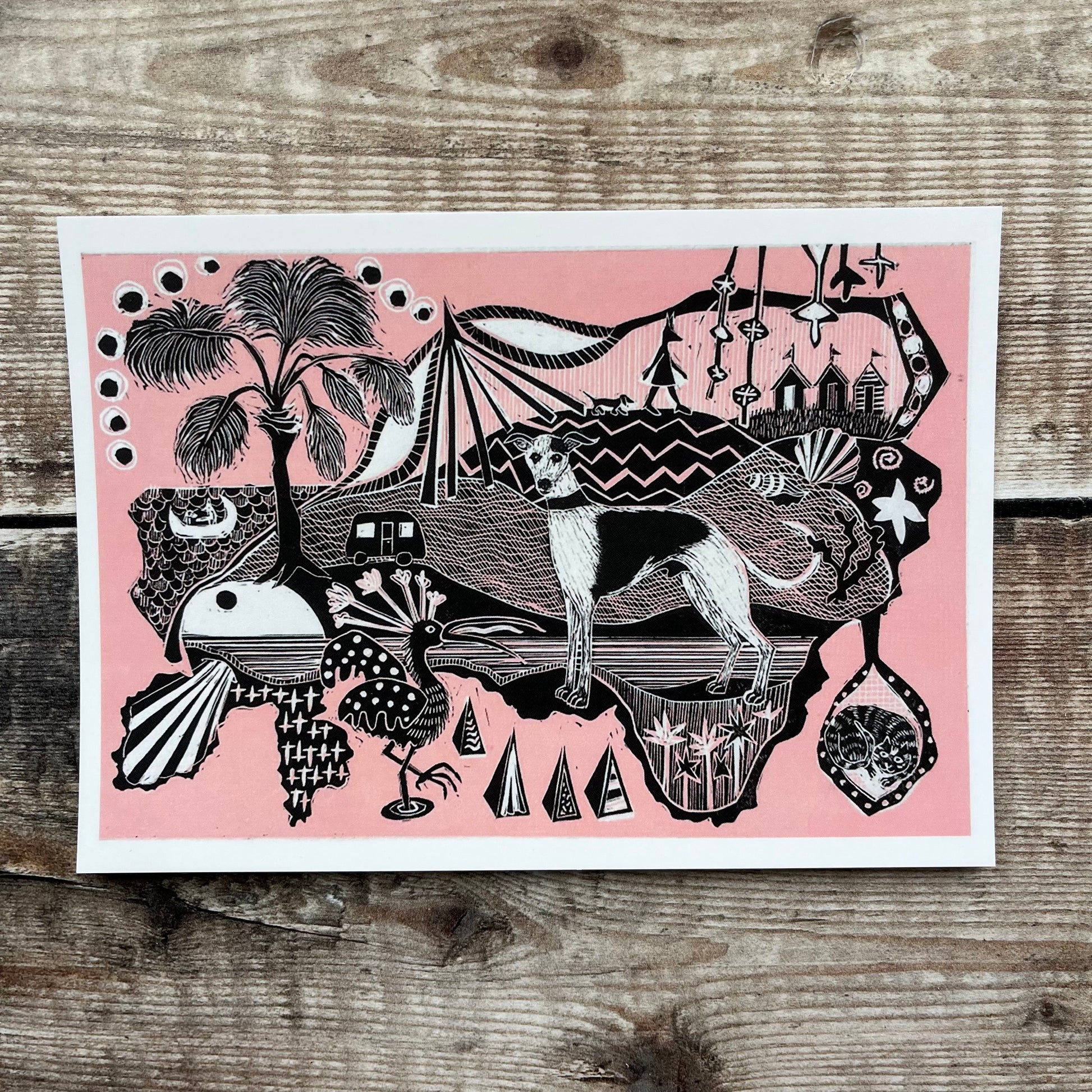 The Whippet, the beach huts and the stripy cats