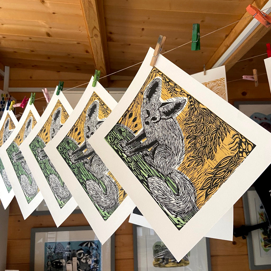 My artwork is handprinted with love from my colourful studio in the heart of rural England and shipped to customers worldwide.