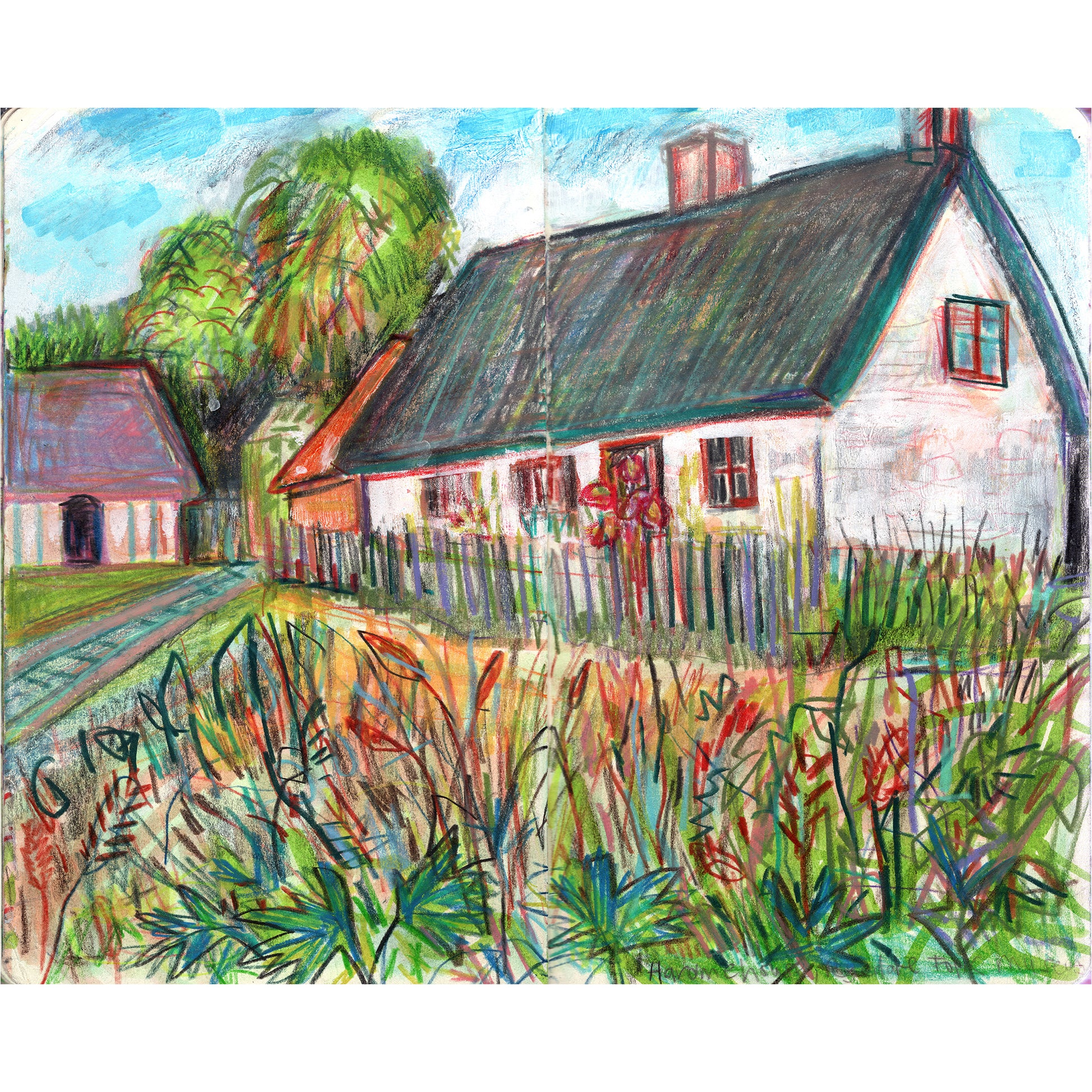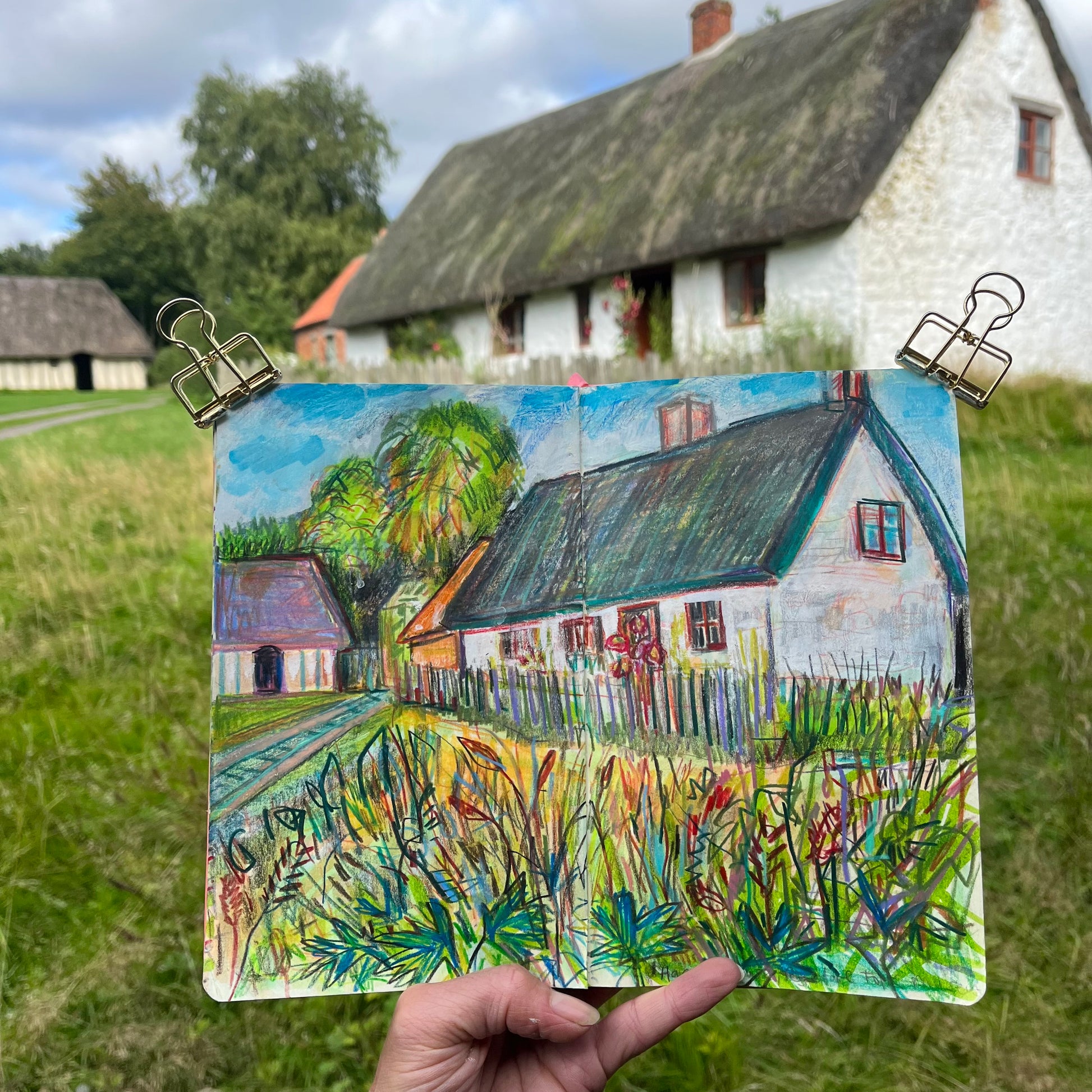 Ryedale Folk Museum is an absolute gem, tucked away in the heart of the North York Moors. A friend told me it would be right up my street, and she was absolutely right. I was completely taken with its collection of beautifully preserved historic buildings, which trace rural life from the Iron Age through to the 1950s. This drawing is of a Victorian cottage originally from the nearby village of Harome — I was drawn to its thatched roof, cottage garden, and the quiet atmosphere that seemed to linger in the air.