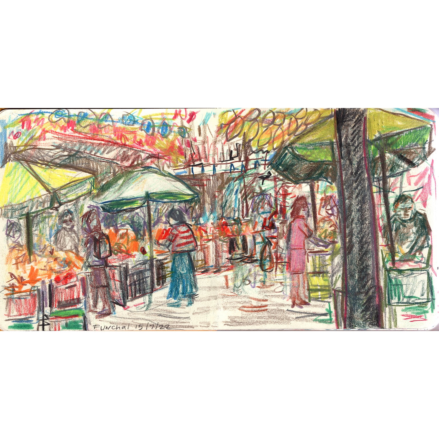 One of my favourite places in Funchal was the daily farmers market, I went there every morning for a coffee and enjoyed sitting on the side lines drawing the hustle and bustle.