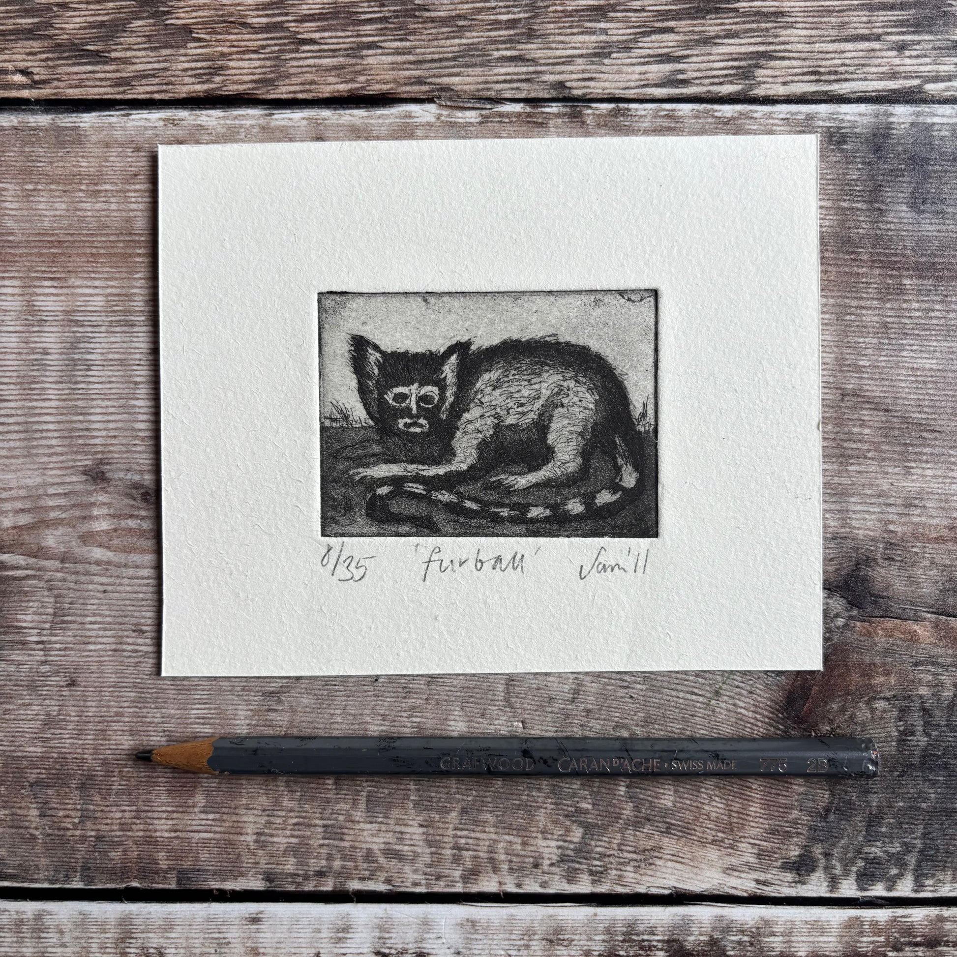 I have a few prints of my Furball etching - they are test prints but pretty perfect !