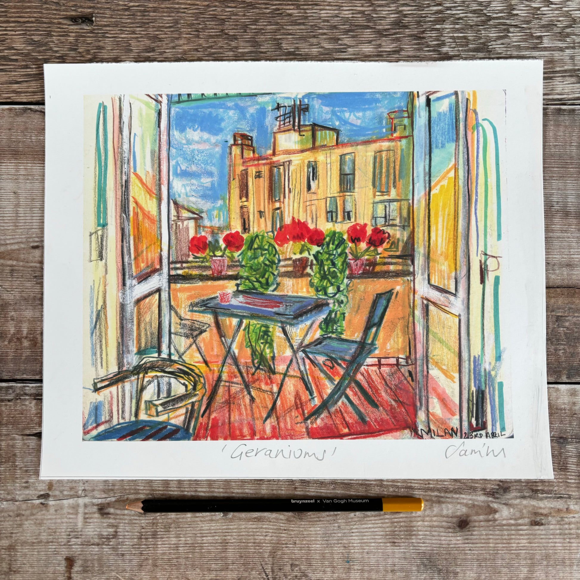 I have 2 prints of my Geranium drawing. The print is perfect, the paper is just a little too small.
