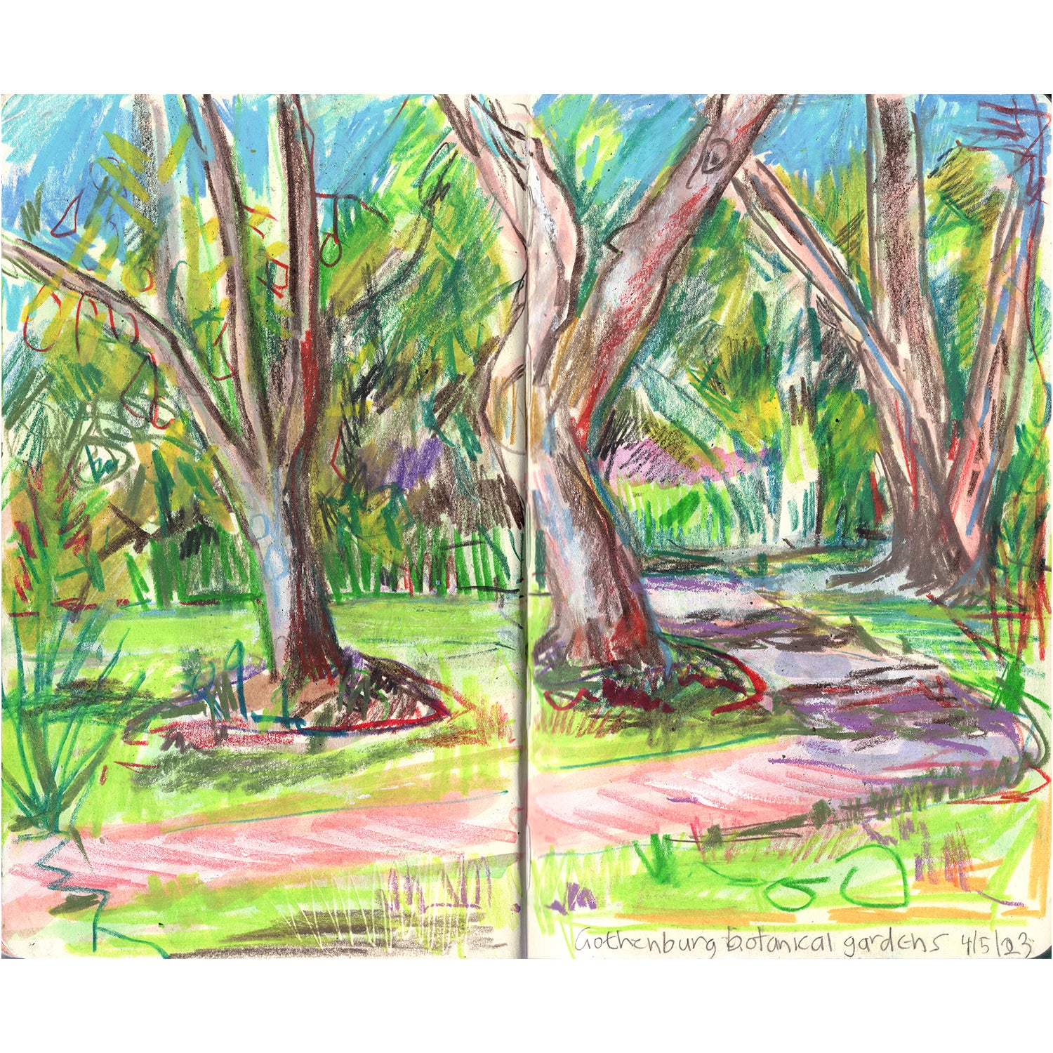 If there is a botanical garden in a city then you can guarantee I will find it and spend a day drawing there. I loved exploring the expansive botanical gardens in Gothenburg. It was the start of the summer and everything was just coming into bloom. I loved this dappled tree lined avenue and spent a lovely couple of hours drawing in the shade of the trees.
