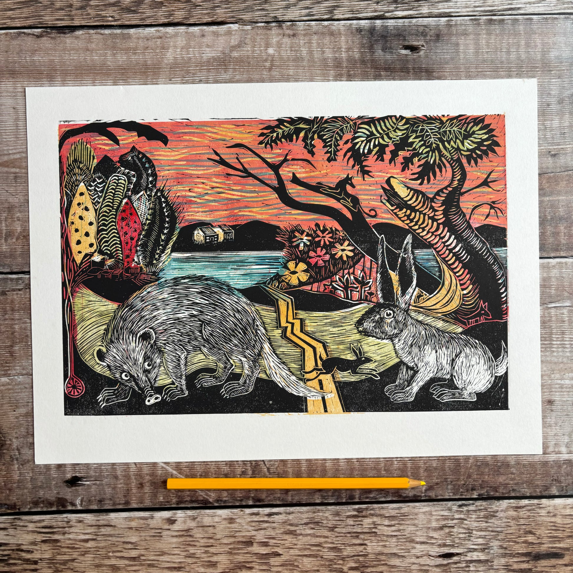 My artwork is handprinted with love from my colourful studio in the heart of rural England and shipped to customers worldwide.