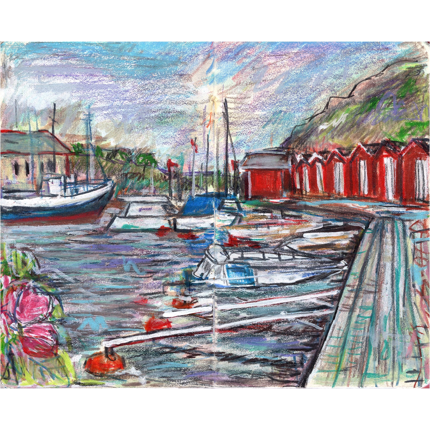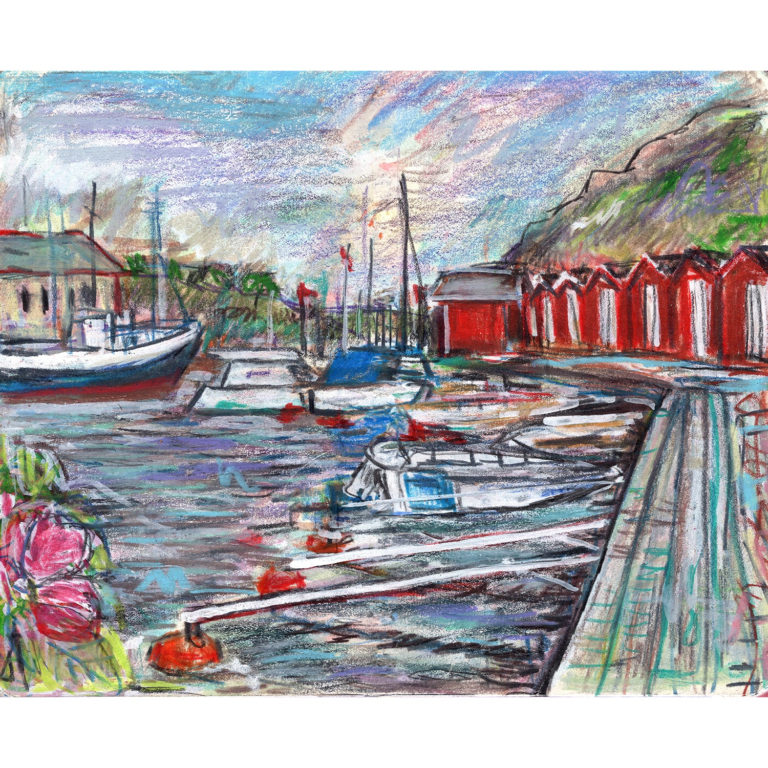 This little marina was just around the corner from our AirBnb in Styrsö. The red huts that lined the deck immediately caught my attention so I knew I had to spend a couple of hours there, drawing the boats and the huts! I particularly enjoyed capturing the many tones within the sea and sky - its always surprising how many colours can be found within an overcast sky when you look closely!