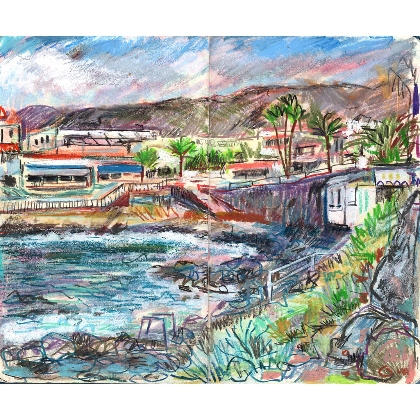 This replica drawing from my sketchbook can be purchased with or without the seam of the sketchbook visible. Please select your preference.