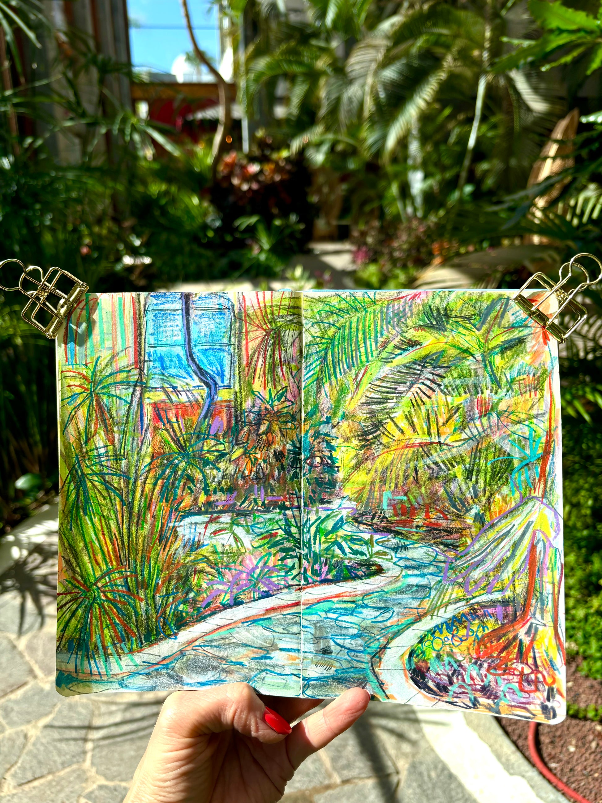 In our hotel, the Princesa Yaiza, there was an incredible indoor garden full of cacti and succulents. I spent many hours there during my stay, reading, drawing and just enjoying the peace and quiet. This is the first drawing done in my large sketchbook. It took around 2 hours to complete.