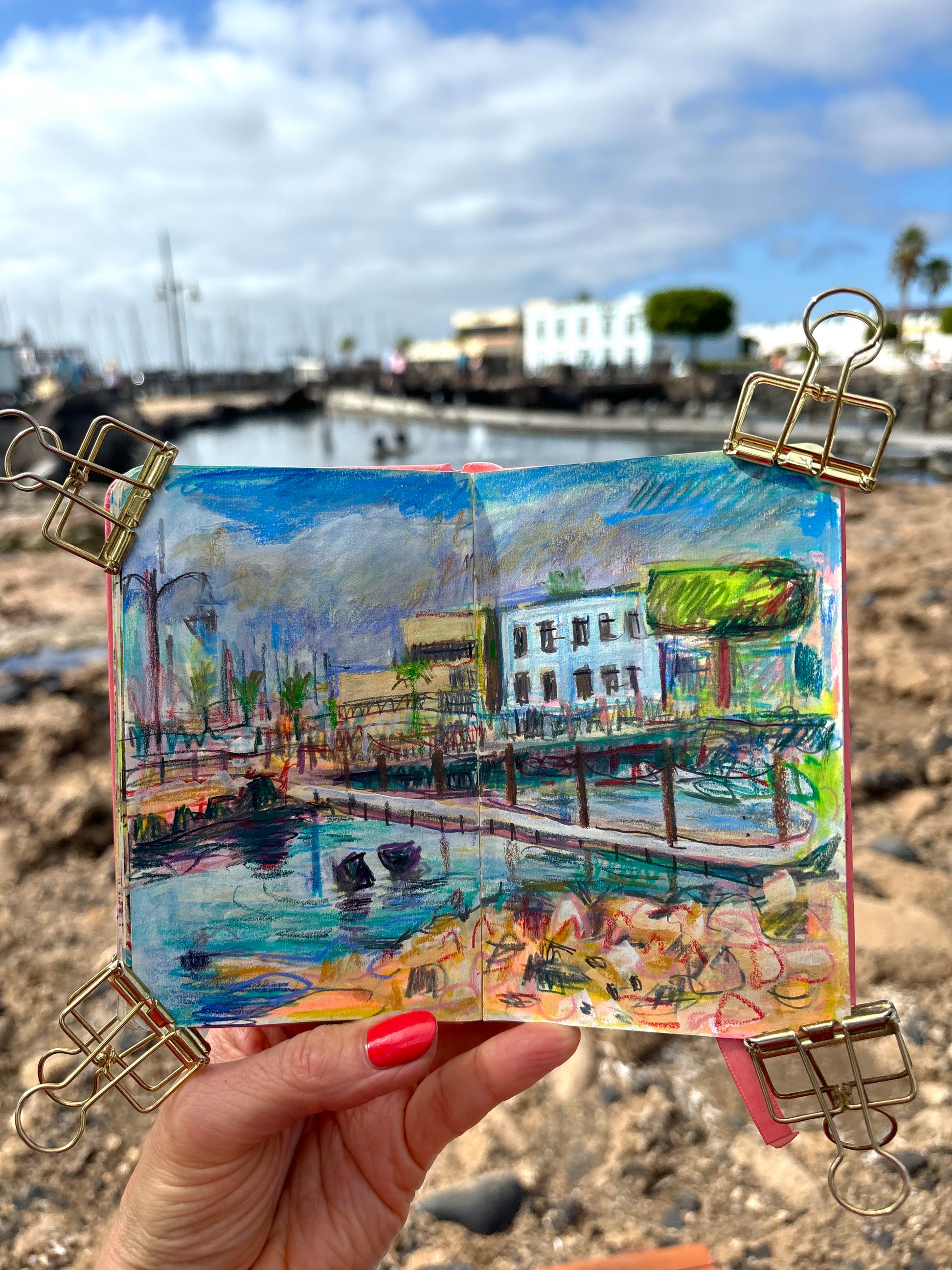 Marina Rubicon in Playa Blanca was one of my favourite places to draw during my time in Lanzarote. It was the perfect place to sit, draw and watch people for a couple of hours. I did this one Saturday morning when the market was in full swing.