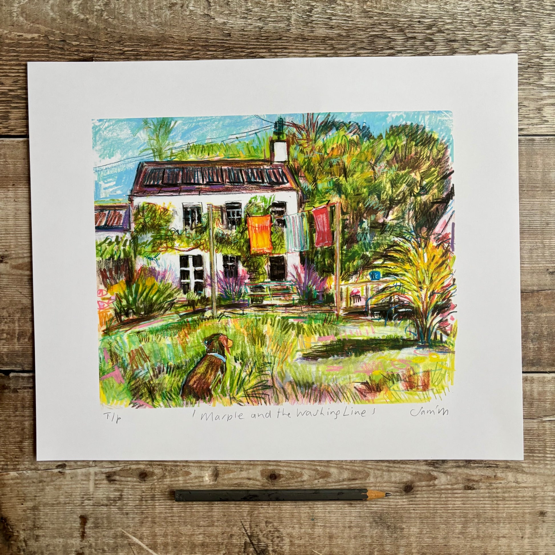 I have one print of my ‘Marple & the Washing Line’ drawing. This is the large size. This is also on the cover of my new book ‘Sketch’