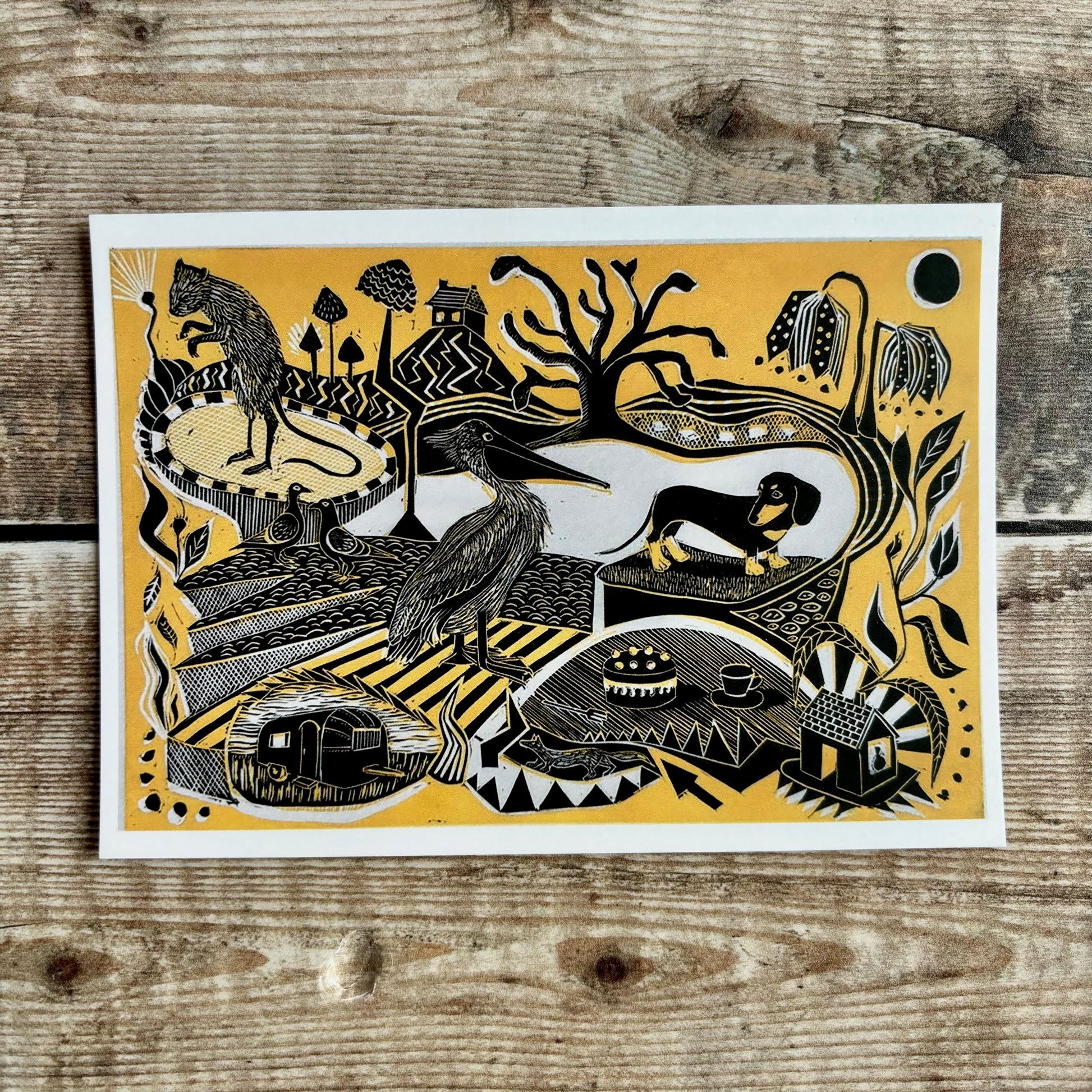 My artwork is handprinted with love from my colourful studio in the heart of rural England and shipped to customers worldwide.