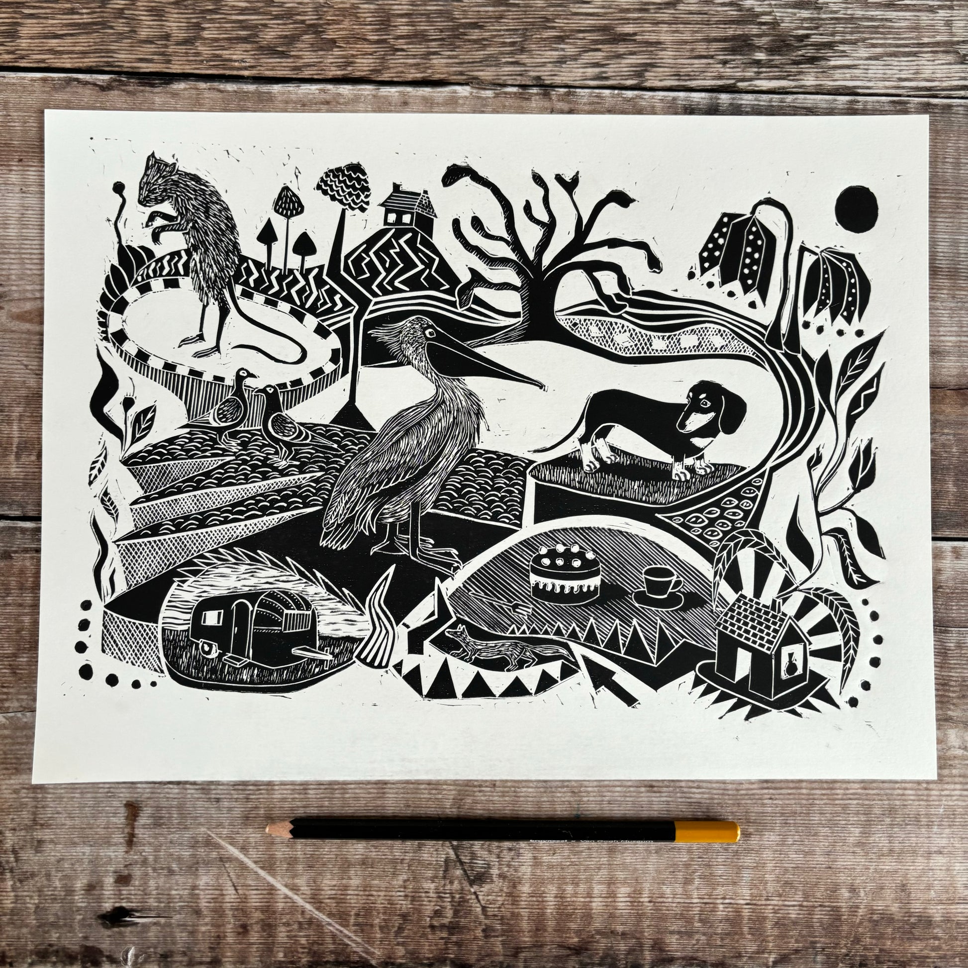 My name is Sam, I'm a printmaker working from my studio in rural Northamptonshire. I've recently left London after 22 years and am now enjoying the fresh air, open skies and wildlife of my new life in the country. Miss Marple my ever faithful mini dachshund loves it too!