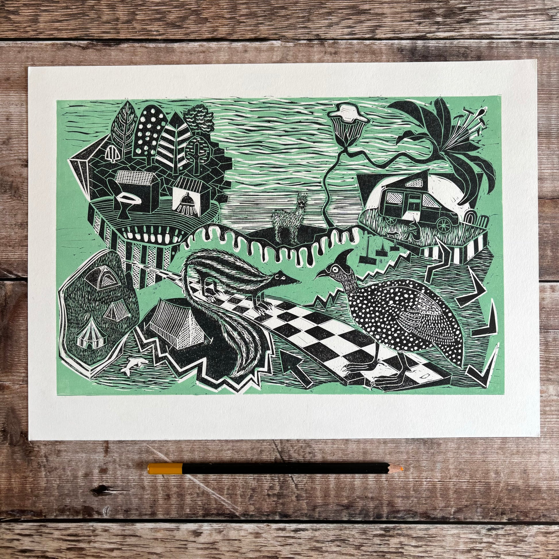 My artwork is handprinted with love from my colourful studio in the heart of rural England and shipped to customers worldwide.