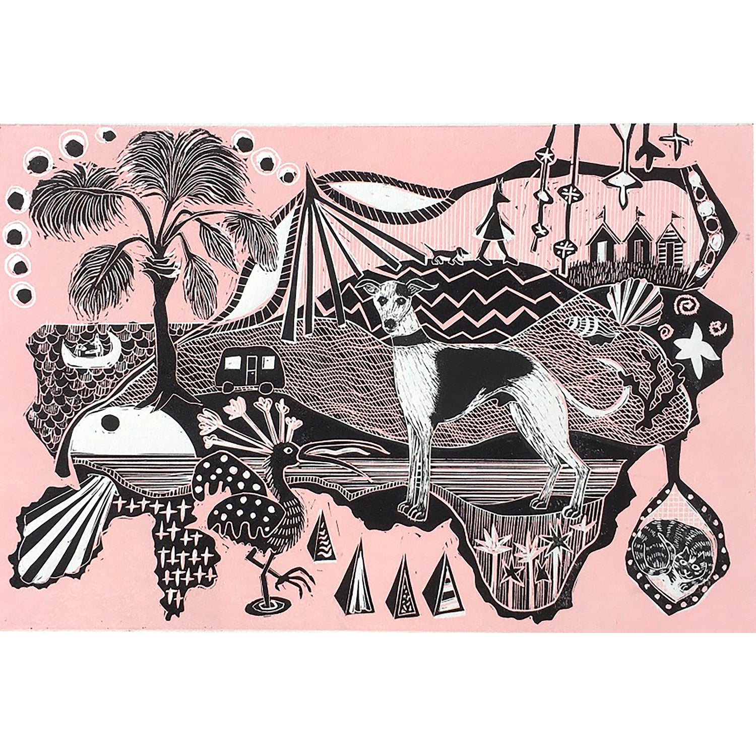 My name is Sam, I'm a printmaker working from my studio in rural Northamptonshire. I've recently left London after 22 years and am now enjoying the fresh air, open skies and wildlife of my new life in the country. Miss Marple my ever faithful mini dachshund loves it too!