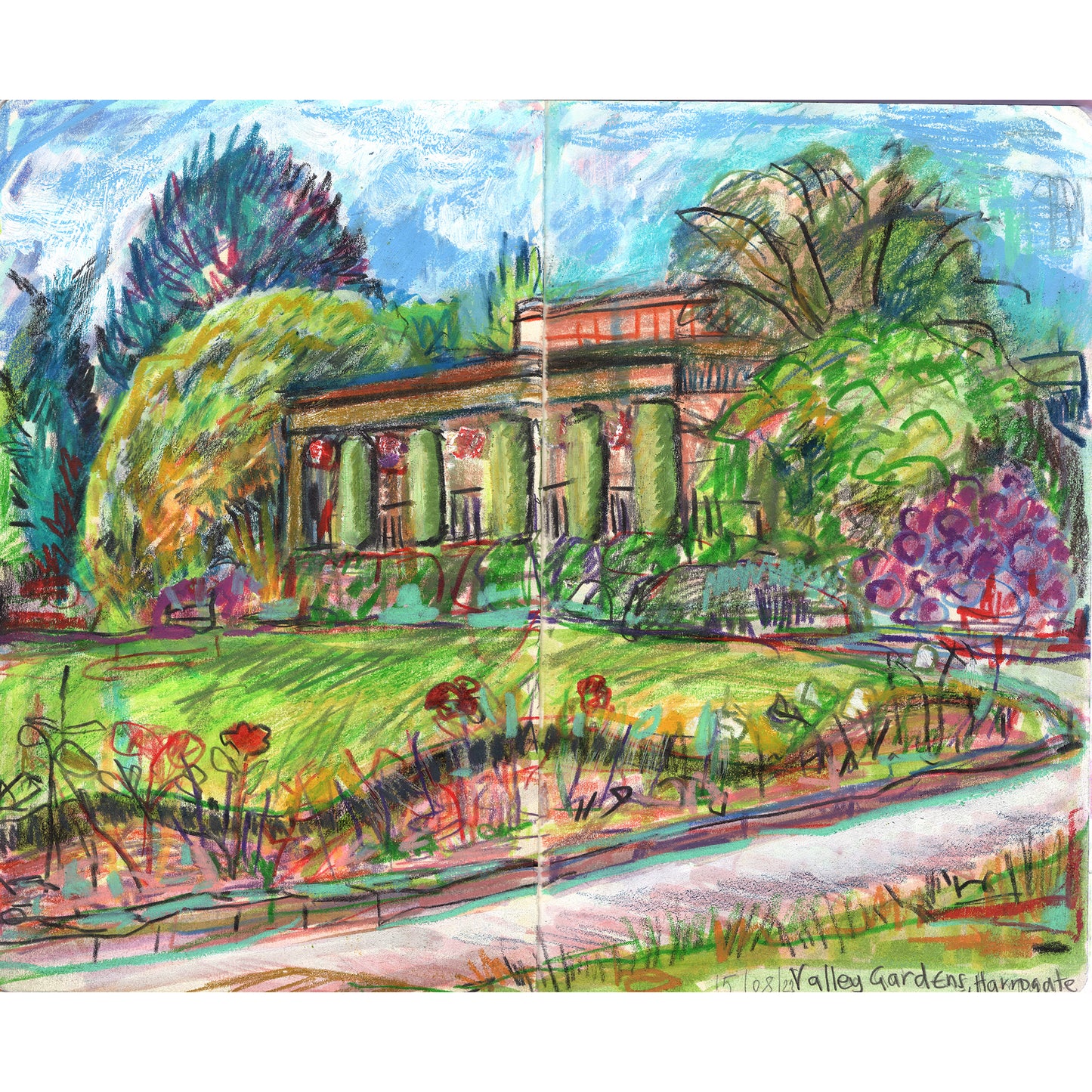 One of my students used to live in Harrogate and told me I absolutely had to visit Valley Gardens. I'm so glad I listened. It’s a beautiful, peaceful park filled with incredible trees and colourful herbaceous beds. I found a quiet spot and spent the afternoon sketching the art deco pavilion, which made the perfect focal point. It was one of those days where everything just came together - the light, the colours, and the calm.