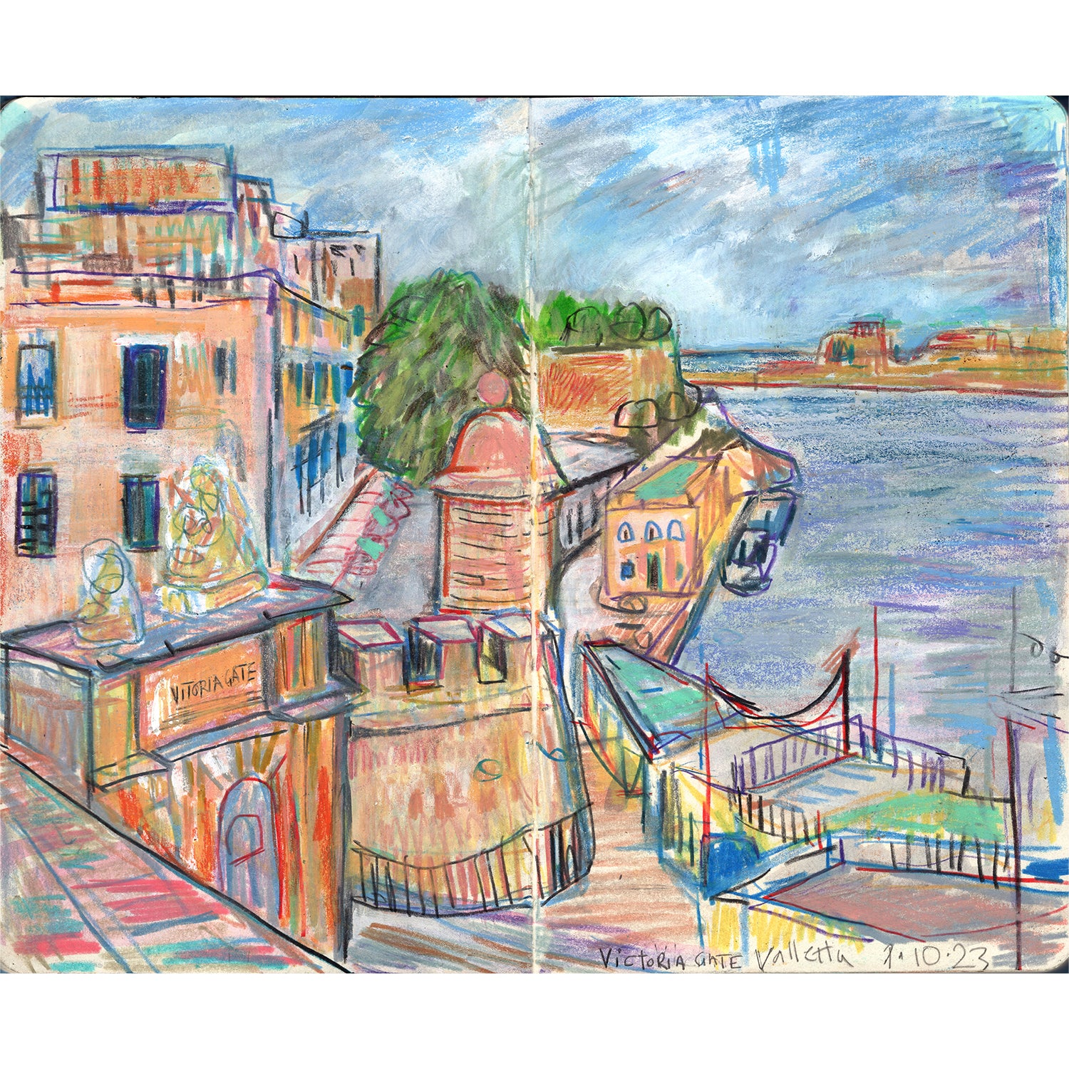 On the second day of my stay in Valletta I came across Victoria Gate - the city gate of the city. It was built by the British in 1885 and named after Queen Victoria. I perched myself on the wall and drew the gate and its surroundings for a couple of hours , and thoroughly enjoyed it.