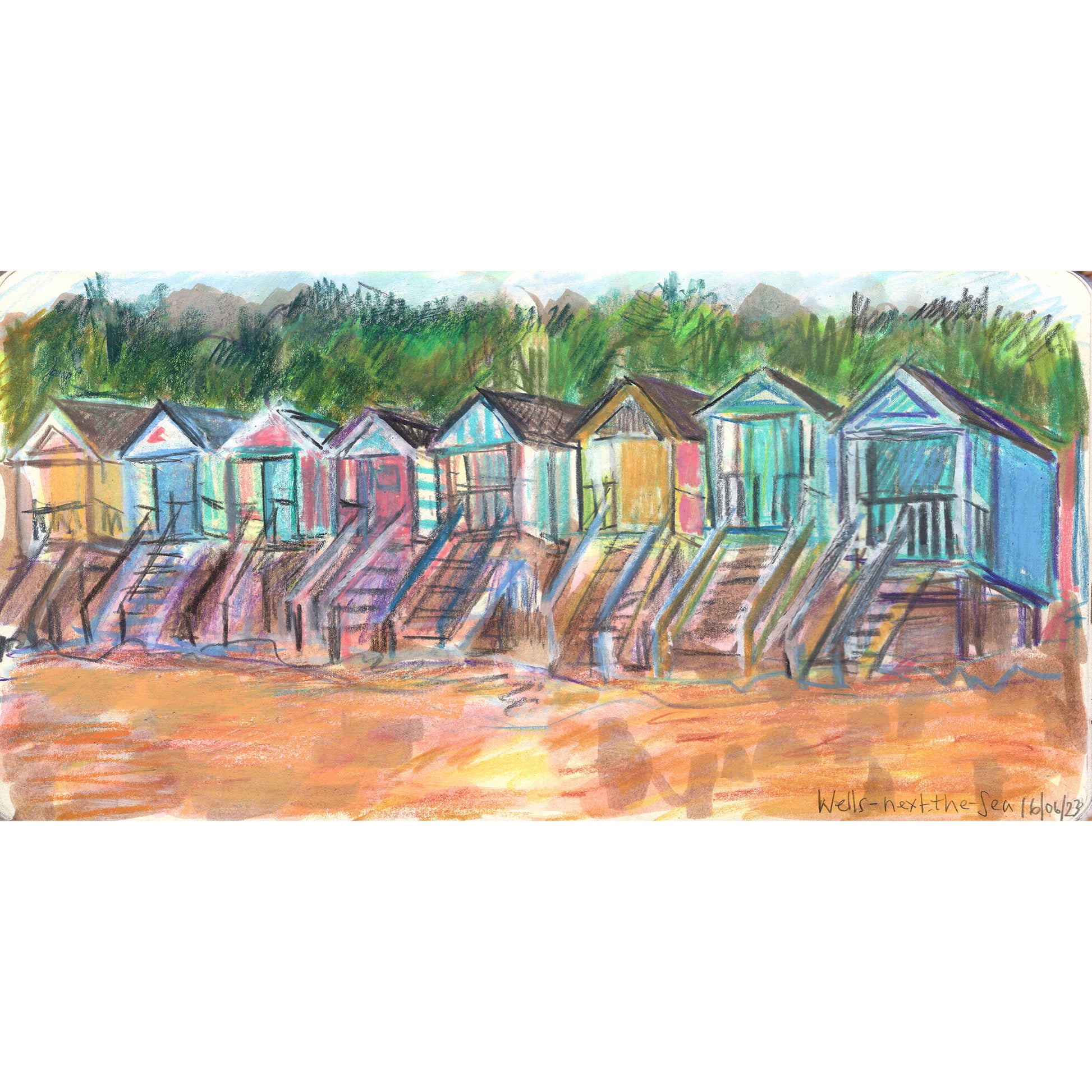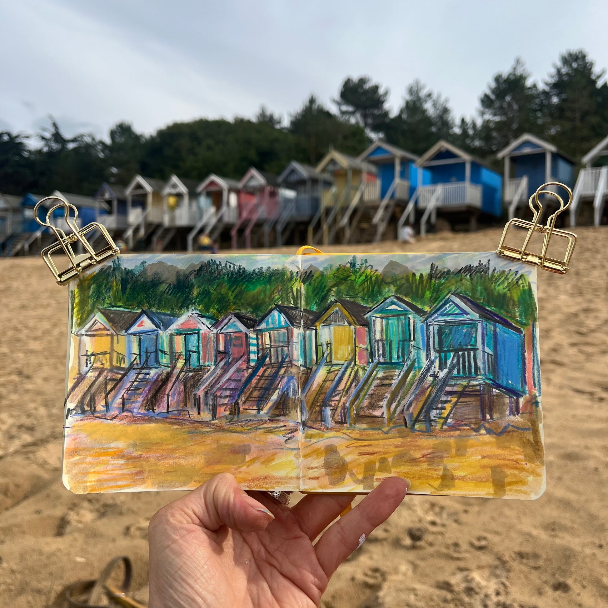 Wells-next-the-Sea is one of those places that holds a lifetime of memories. I’ve spent so many days here over the years, in all weathers, and it never loses its charm. The colourful beach huts always make me smile - they’re such characters lined up along the sand, and a complete joy to draw. Every time I come back, it feels both familiar and fresh all at once.